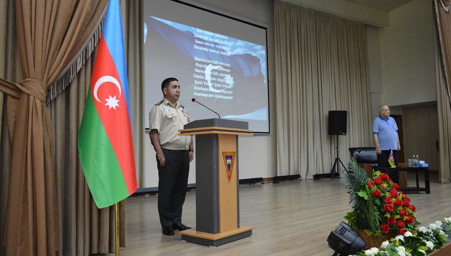 Rasim Balayev kursantlar və zabit-müəllim heyəti ilə səmimi və maraqlı söhbət aparıb. O, Azərbaycan kinosu, milli obrazlar, qəhrəmanlığı və vətənpərvərliyi təbliğ edən filmlərin əhəmiyyətindən danışıb, auditoriyanın istəyilə böyük Azərbaycan mütəfəkkiri İmadəddin Nəsiminin “Neylərəm” qəzəlini səsləndirib.