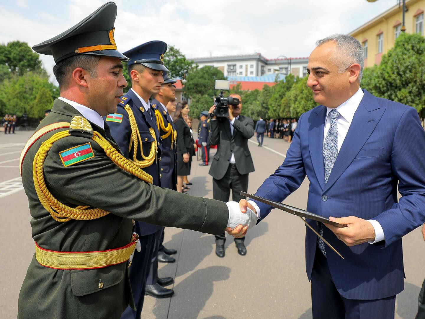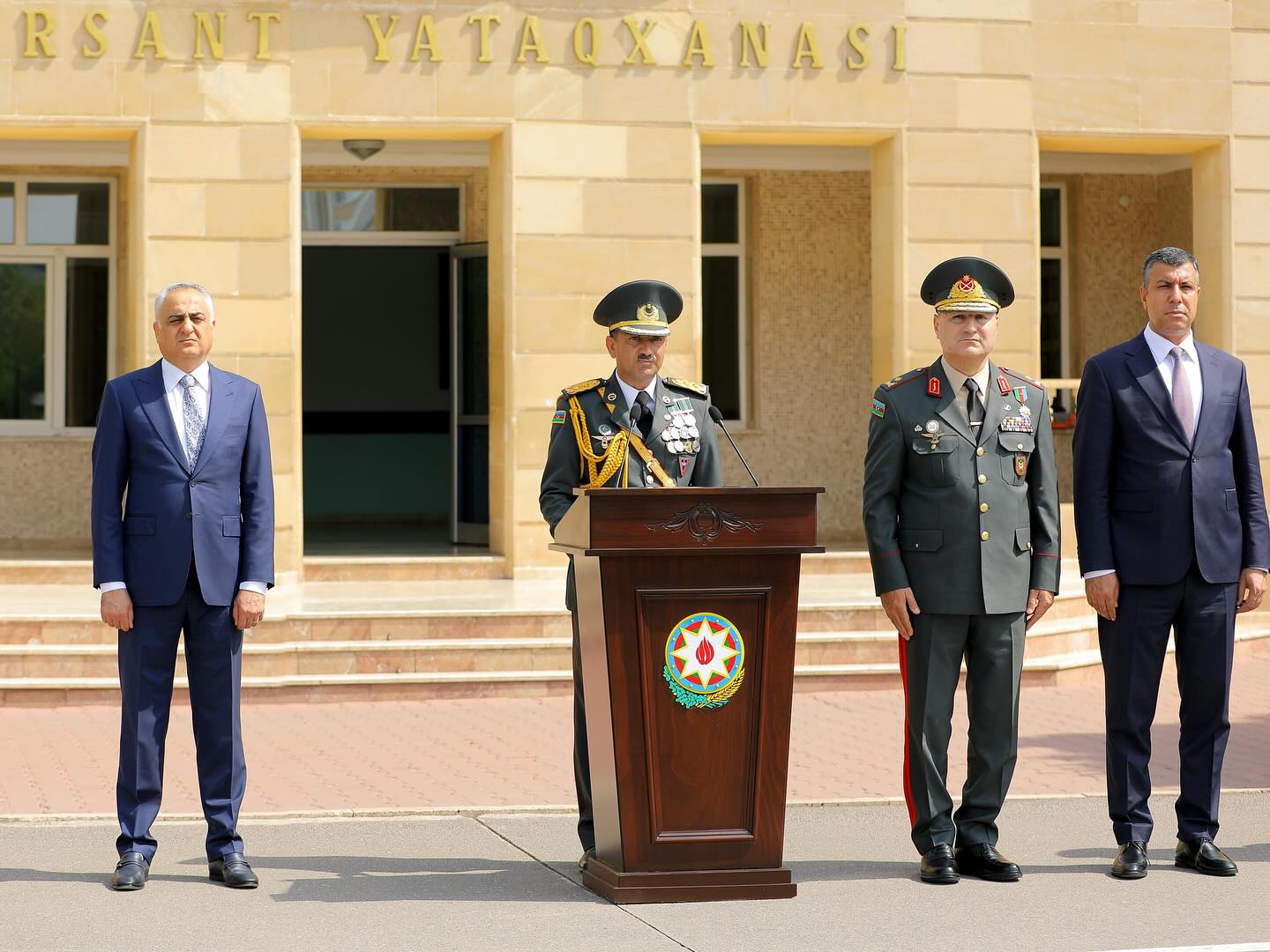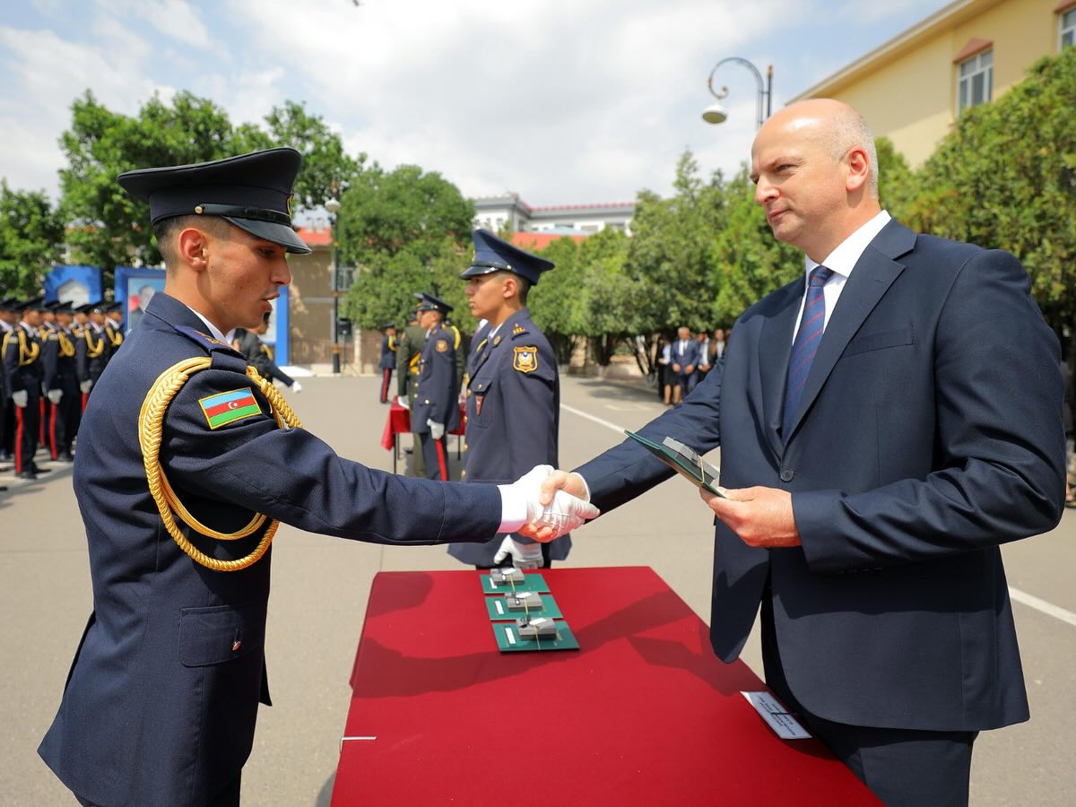 Daha sonra kursant Fərid Abbasov təhsil ocağının rəmzi kötüyünə 2025-ci ilin xatirə lövhəsini vurduqdan sonra döyüş bayrağı növbəti buraxılışın kursantlarına təhvil verilib.